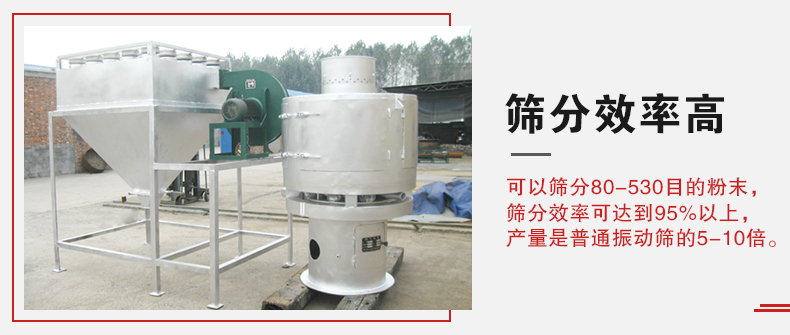 1、可以篩分80-530目的粉末,篩分效率可達(dá)到95%以上,產(chǎn)量是普通振動篩的5-10倍或更高;