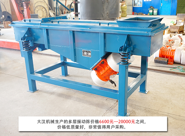 隨著生產節奏的加快,單層直線振動篩已經完全無法滿足生產需求,多層直線振動篩就是由直線振動篩改造升級的一款高效篩分設備。多層直線振動篩可以將物料分級為多種規格,實現一次投料出多種規格物料,可以有效節省時間成本。由于不同廠家生產的多層直線振動篩型號、生產工藝等不同,所以就導致市場上多層直線振動篩價格不一,那么一臺多層直線振動篩一般都多少錢呢?大漢小編將為您解答: