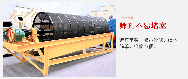 電機(jī)驅(qū)動(dòng)滾筒軸線作旋轉(zhuǎn)運(yùn)動(dòng),減速機(jī)調(diào)節(jié)筒體以一定的轉(zhuǎn)速旋轉(zhuǎn),物料由進(jìn)料口進(jìn)入筒體內(nèi),在旋轉(zhuǎn)產(chǎn)生的離心力作用下,物料在筒內(nèi)翻滾,自上而下通過(guò)分級(jí)篩網(wǎng)析出,由于篩網(wǎng)分級(jí)尺寸不同,物料逐漸被分離篩選,粒度合格的物料經(jīng)篩分后落入到各自的漏斗,然后由人力方式運(yùn)出或通過(guò)輸送機(jī)自流送往成品站。合格產(chǎn)品經(jīng)過(guò)下端出料口排出,顆粒較大,分選不合格的產(chǎn)品經(jīng)另一排料口排出,筒內(nèi)清理裝置,使篩網(wǎng)不宜被阻塞。