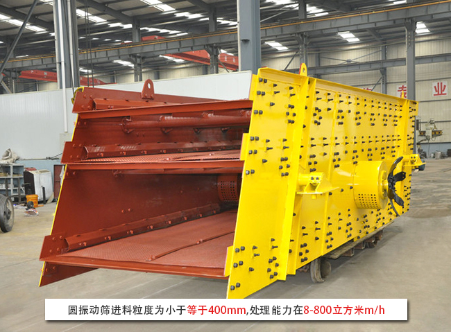 圓振動篩進料粒度為小于等于400mm,處理能力在8-800立方米m/h