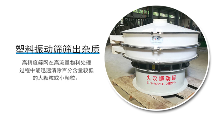 塑料振動篩主要采用的是pp塑料材質制作而成,該材質具有:抗氧化,抗腐蝕,無化學反應的特征。