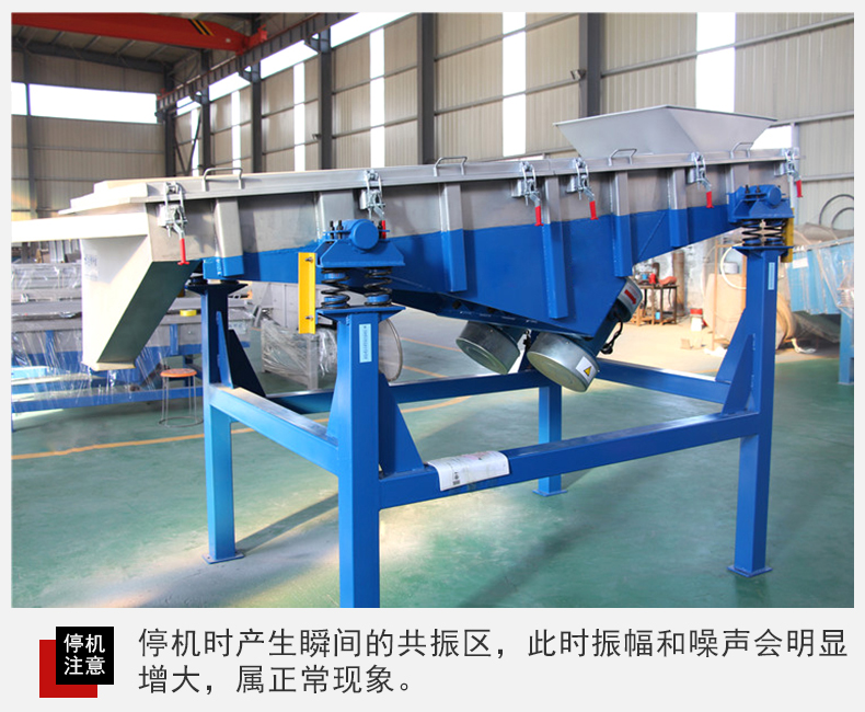 6、設備在停機時產生瞬間的共振區,此時振幅和噪聲會明顯增大,屬正常現象,設備在開停機前,篩面上不得有存留物料,篩網需經常檢查是否張緊、破損,如有破損要即時更換。